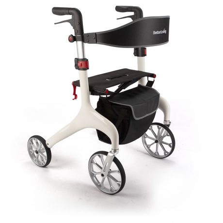 Weighing just 5.7 kg, this stylish walker is crafted from ultralight carbon fibre and designed for effortless everyday use. The height-adjustable handles feature a 120 mm extension range, making it easy to achieve the perfect fit for users of average height and weight. Moulded handgrips with soft-touch brakes provide comfort and added safety, particularly for those with limited strength. For maximum comfort while seated, the walker includes a wide, padded nylon seat and a stable backrest.